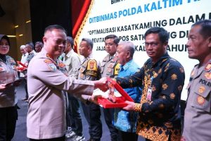 Ketua RT 026 Penajam, Muhammad Darus, hadir didampingi Sekretaris Kecamatan Penajam, Peri Tangdirerung, S.H., M.M., yang turut memberikan dukungan penuh atas upaya penguatan keamanan lingkungan melalui kegiatan Satuan Keamanan Lingkungan (Satkamling). Penyerahan penghargaan dilakukan langsung oleh Direktur Pembinaan Masyarakat (Dirbinmas) Polda Kaltim, Kombes Pol Eri Dwi Hariyanto, S.I.K., sebagai wujud apresiasi terhadap peran aktif masyarakat dalam menjaga stabilitas keamanan wilayah.